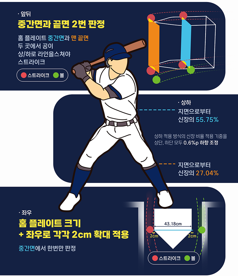 * 기준 - 가로 : 홈플레이트 폭 / 세로 : 타자의 무릎과 가슴 사이